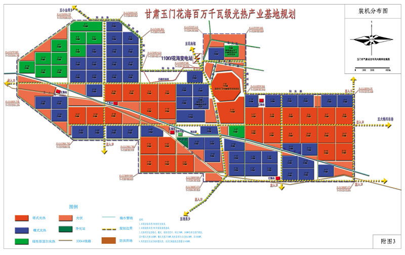 据规划布局图(见附件),目前已落户该园区的包括国华电力玉门100MW熔盐塔式电站、博成通达50MW菲涅尔光热电站、金钒新能源50MW槽式电站项目。其中国华电力项目为首批国家光热示范项目之一,玉门获批的另外三个示范项目均不在该园区规划内。