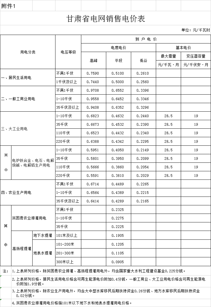 近日,甘肃省发展改革委下发《关于电网增值税税率调整相应降低一般工商业电价有关事项的通知》,《通知》称,自2019年4月1日起,省内一般工商业用电(除汶川地震重灾八县区非普工业用电)价格在现行标准基础上每千瓦时统一降低3.68分钱;汶川地震重灾八县区非居民照明、商业用电用电价格,在现行标准基础上每千瓦时统一降低5.68分钱。